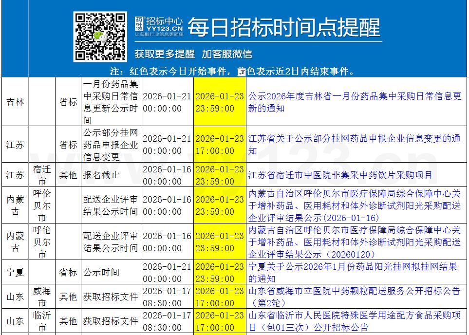 今日政策汇总与招标时间点提醒1月24日-1月26日